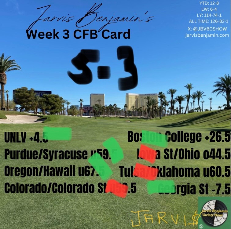 Week 3 CFB Card: Updated
